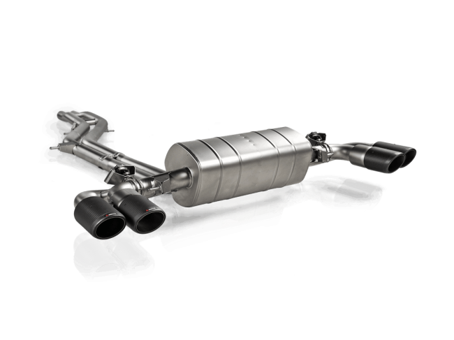 The harmonic and satisfying sound, perfectly matched to the engine’s operation, gives the impression of a V12 engine from inside the cabin. The specially developed control kit converts the Akrapovic exhaust system from a mechanical system to a mechatronic one. The gas flow from each link pipe is driven into the muffler without unpleasant streaming or whistling, with peaks at specific frequencies dampened for cruising comfort, and the sportier and emphasized sound is fully embraced when driving more dynamically. The sound experience of the Evolution Line (Titanium) system is directly linked to the car’s drive with no compromise to comfort or sportiness. This product is ECE type approved, with plug and play installation and no requirement to remap the ECU.