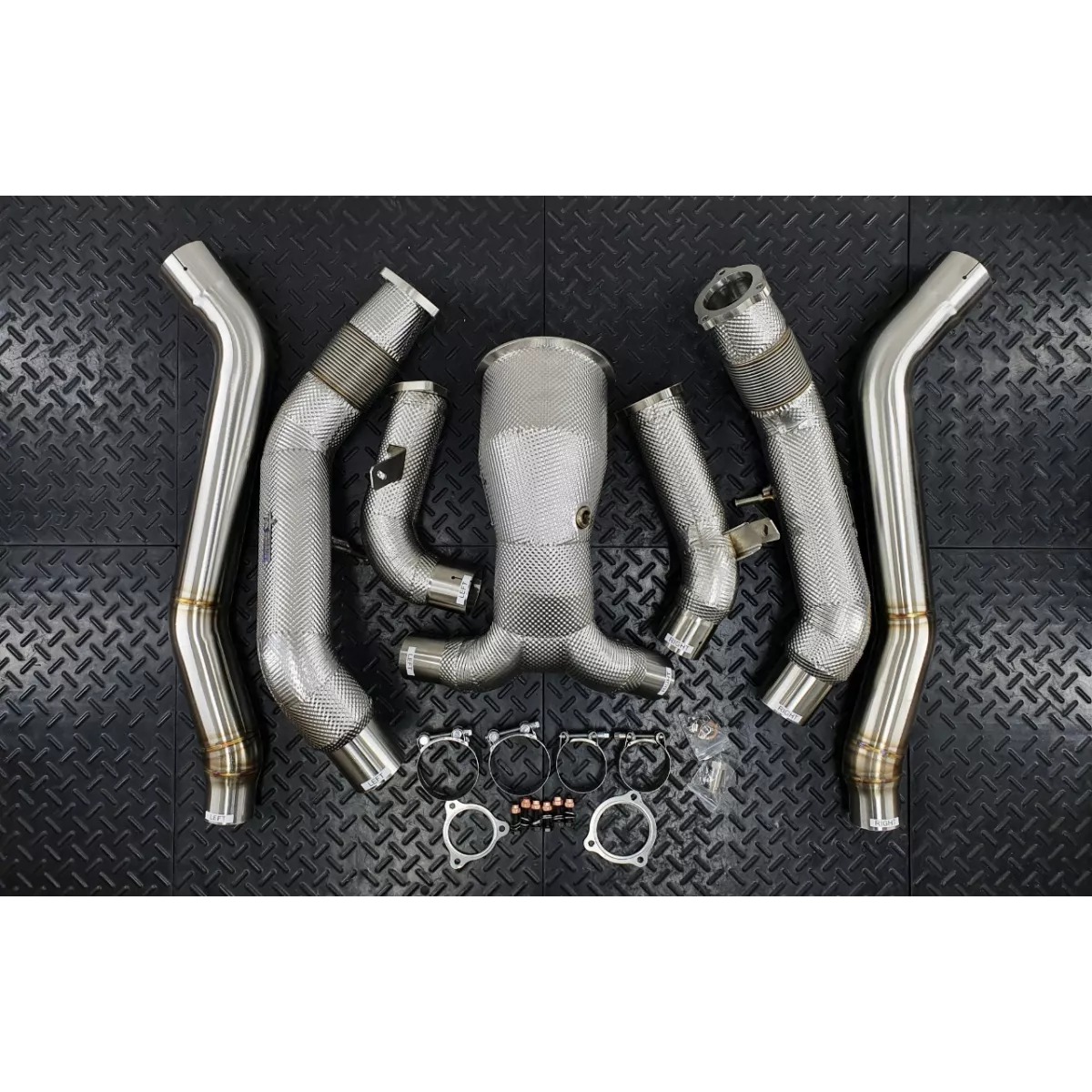 Transform the breathing of your 2018+ Audi A7 Sportback Sedan C8 55Tsfi 3.0 Turbo and 2019+ Audi A6 Sedan/Allroad C8 55Tsfi 3.0 Turbo with Redstar performance exhaust downpipes and a resonator delete. By replacing the massive OEM catalytic converter sections directly after the turbocharger with precision built Redstar downpipes plus a matching resonator delete, this system removes factory restrictions and liberates the 3.0t Turbo 55 TFSI engine.