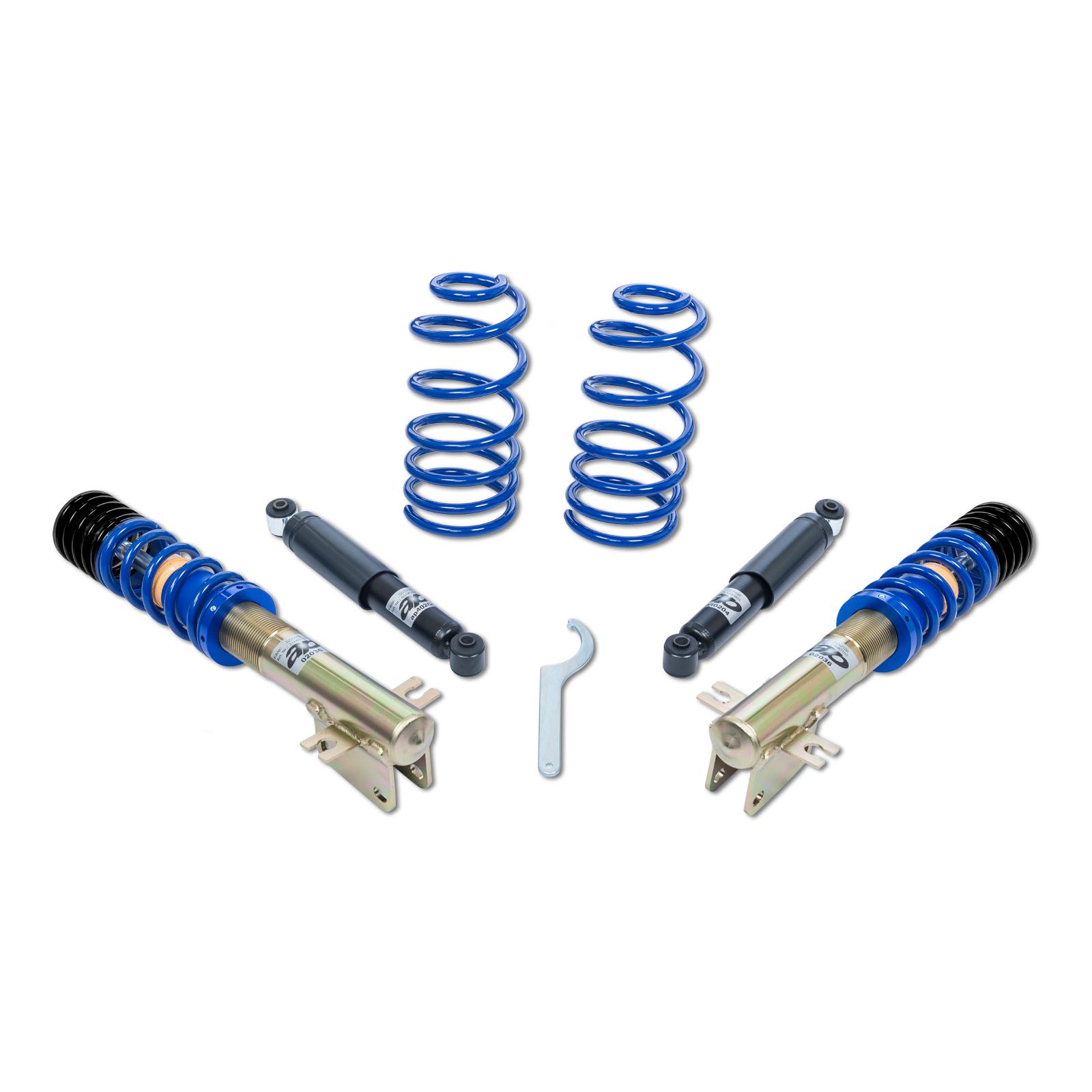 The AP coilover kit combines the benefits of sporty lowering for a sleek, aggressive look with outstanding ride comfort and limitless driving enjoyment.