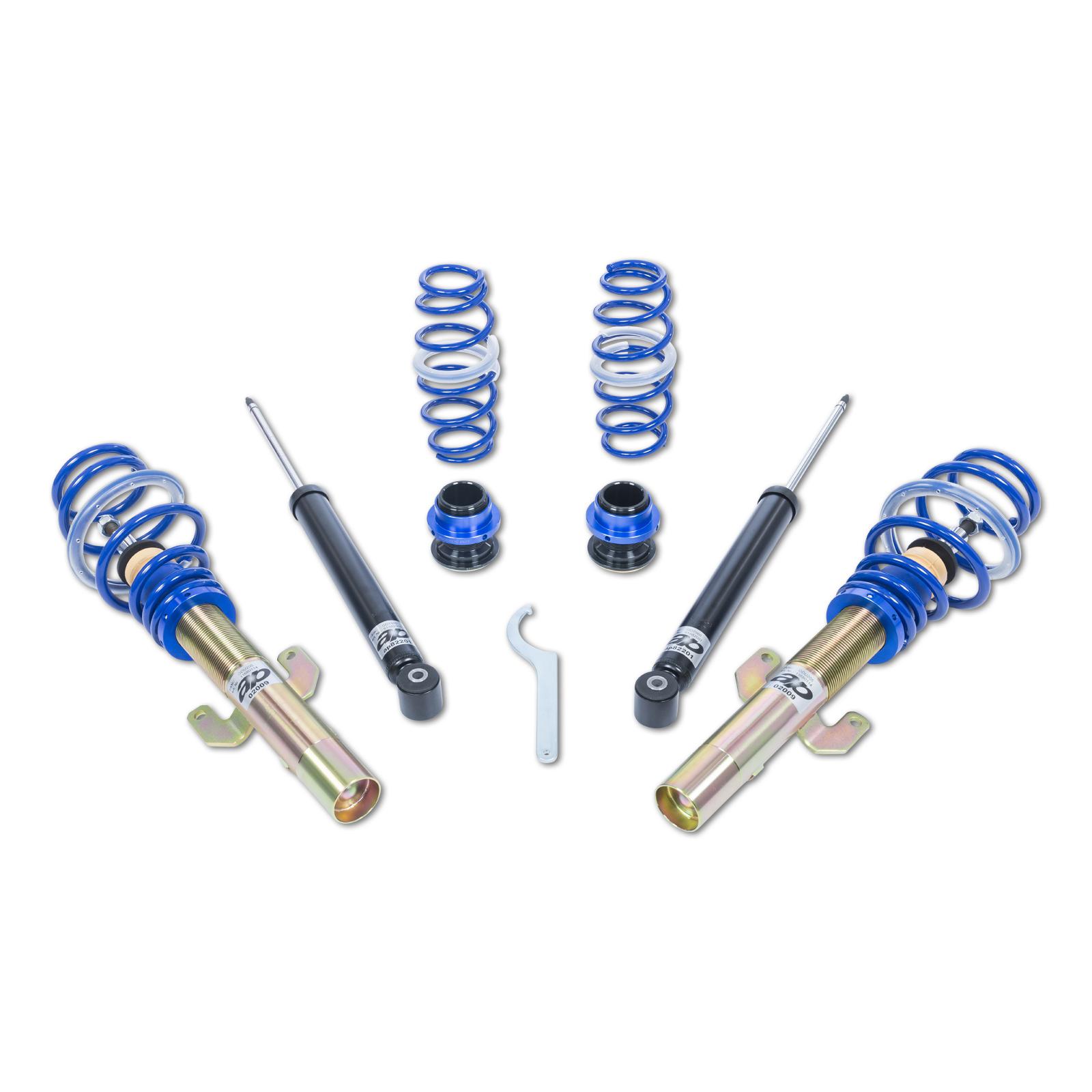 The AP coilover kit combines the benefits of sporty lowering for a sleek, aggressive look with outstanding ride comfort and limitless driving enjoyment.