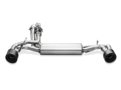 Add a stainless steel Slip-On exhaust system and make the Abarth (1.4 16V T Jet) even faster, even more responsive, and give it an even more striking look and that unmistakable sporty Akrapovic sound. The biggest difference compared to stock is most noticeable when the optional Akrapovic sound kit for adjustable sound is used. When the exhaust valve is open, the sound becomes significantly deeper and tastefully louder, but still entirely without droning. Performance facts apply to the performance exhaust with the Akrapovic sound kit and open valves. The system without the Akrapovic sound kit has a point-welded block in the link pipe that prevents bypassing the muffler. Please note: when the bypass is unblocked, the EC type approval is not valid. Complete the look with a set of exquisite 115 mm tailpipes in either titanium or carbon fibre.