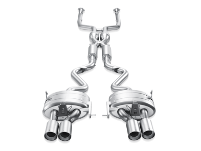The Evolution performance exhaust system for the BMW M3 consists of dual-outlet mufflers, flow-optimized link pipes, and an X-pipe that incorporates high-flow 100 cpsi sports catalytic convertors and resonators. The power and torque gains of the BMW M3 with the Evolution system are just amazing. A substantial increase is detected over a very wide rpm range, and so it increases responsiveness during all phases of driving. Together with incredible weight savings, the Evolution system dramatically changes the power-to-weight ratio. Our goal was to design a system that delivers a deep, rich growl at cruising speeds while also allowing the driver to enjoy an aggressive roar when driving hard. Complete the look with a set of two exquisite tailpipes in titanium or carbon fibre.
