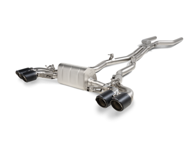 Constructed from high-grade lightweight titanium alloys, the Evolution Line (Titanium) exhaust system has been perfectly tuned to deliver the very best aural experience in all driving modes. Through extensive testing and development, the Akrapovic sound engineers have coaxed a deep, sporty, higher-frequency V8 sound from the car’s turbo engine, more akin to that of a muscle car, while keeping it smooth and eliminating any drone that might hamper the enjoyment. The full titanium exhaust system is finished with two sets of carbon-fibre / titanium tailpipes coming from a central muffler layout featuring two valves, one located on either side of the muffler. The housings are cast in-house in the Akrapovic foundry, and there is a cast collector on the link pipe, where gases from both sides of the engine mix, all designed to create a perfect sound. This plug-and-play exhaust system can be further regulated with the addition of the Akrapovic Sound Kit to control the valves in the exhaust and switch between the sound modes. Further visual enhancements can be achieved with the addition of the optional hand-made carbon-fibre diffuser and mirror caps, available in matte and glossy finishes to provide an eye-catching accompaniment to match the Evolution Line (Titanium).
